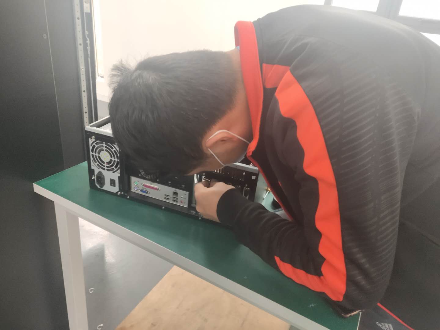 公司員工帶著口罩有序的開展工作。
